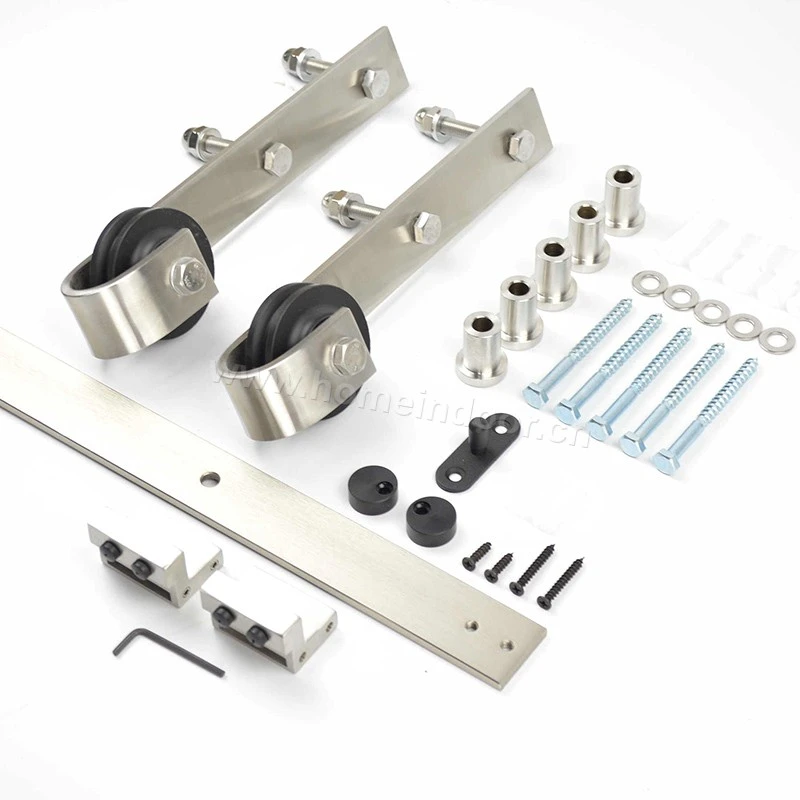 The kit typically includes all the components needed for installation, such as rollers, track, brackets, wall mounts, door stops, and anti-jump discs. The rollers are equipped with high-quality bearings, ensuring a quiet, smooth glide without the annoying squeaks that can come with lesser-quality systems. The track is sturdy, supporting the weight of the door while allowing it to slide effortlessly along the wall.
