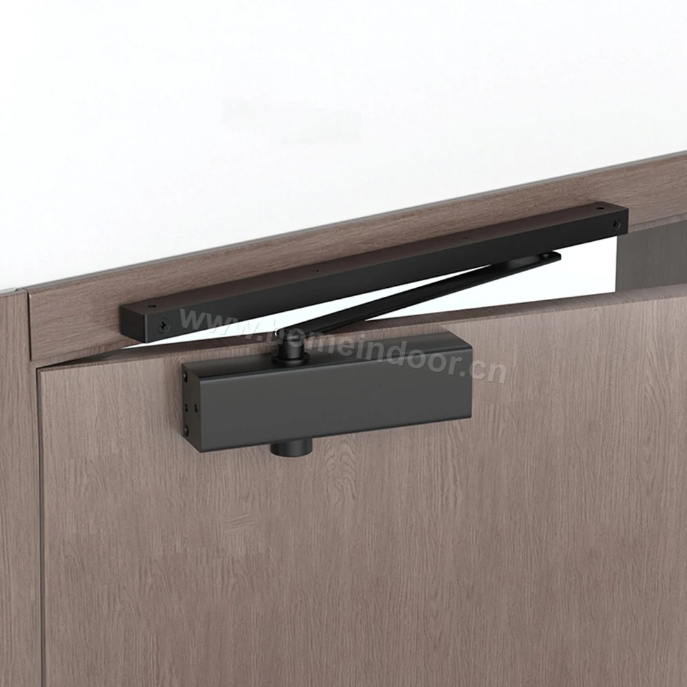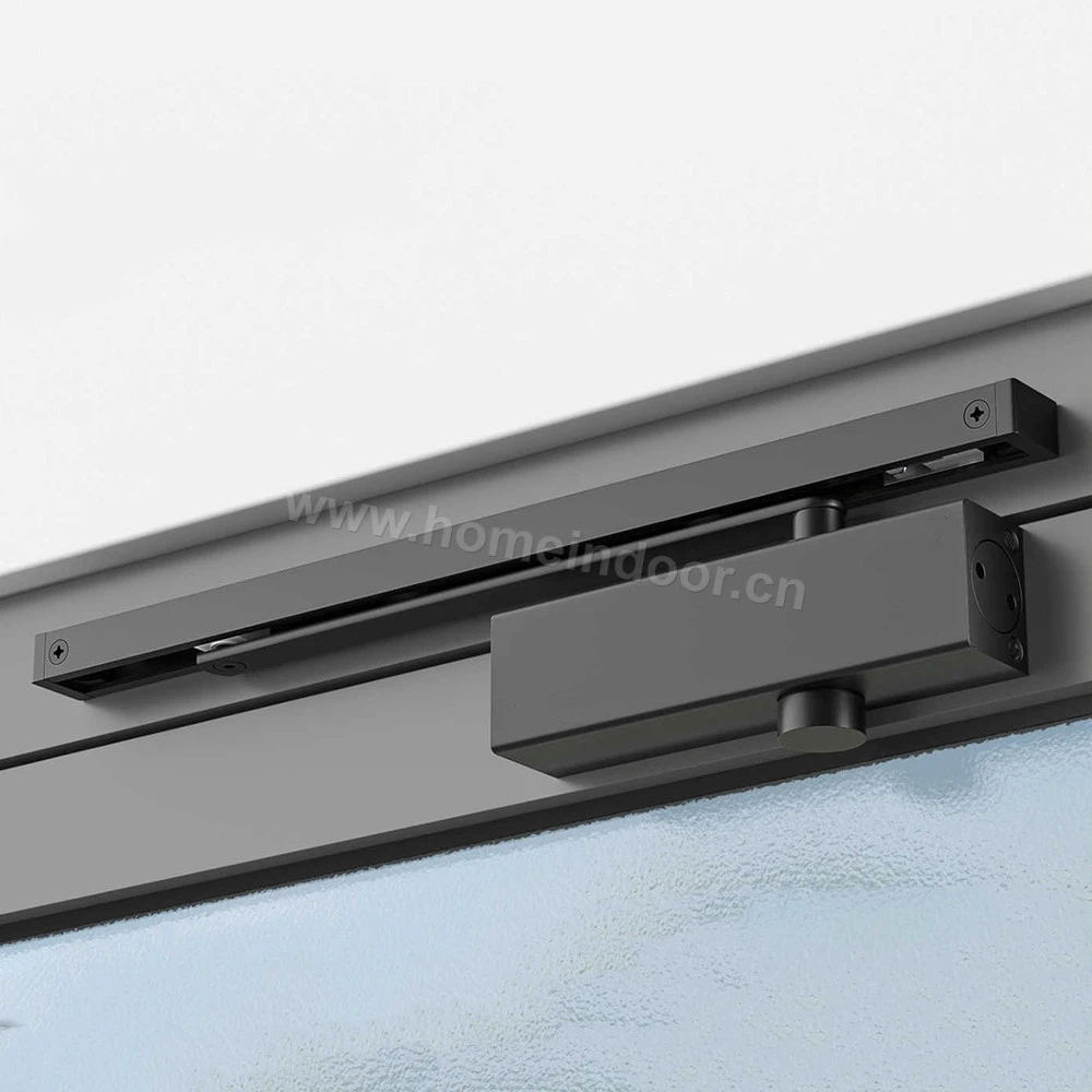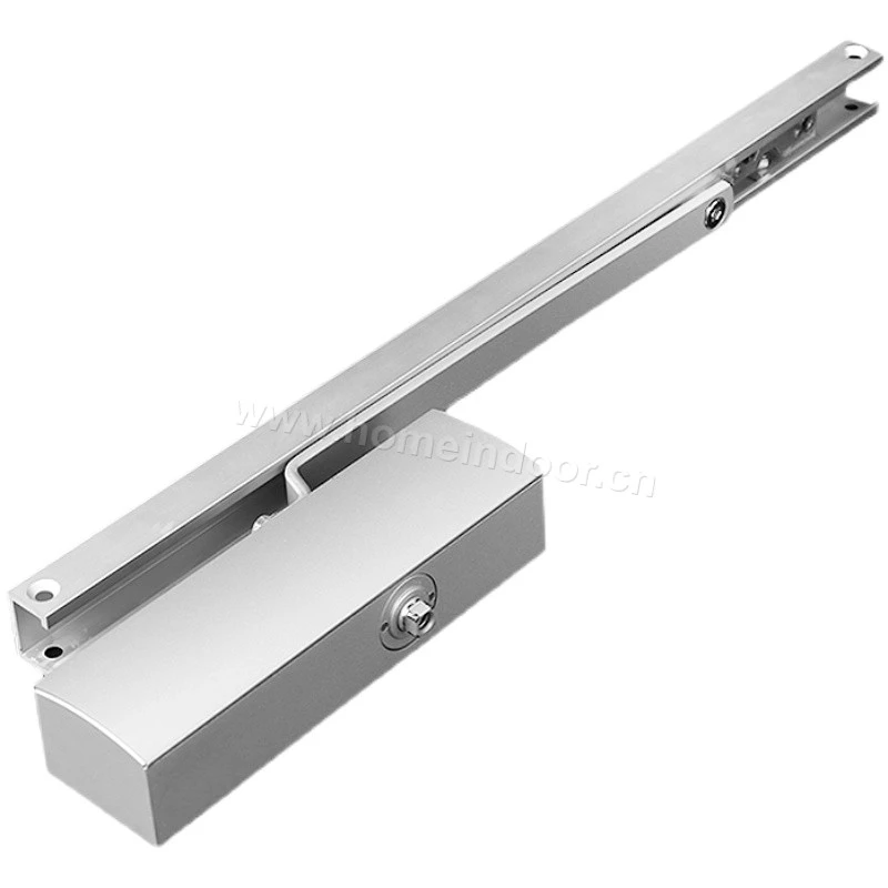 A surface-mounted aluminum alloy door closer with track is a durable and sleek door control mechanism designed for both residential and commercial use. Constructed primarily from high-strength aluminum alloy, this door closer is engineered for corrosion resistance, lightweight performance, and a long service life.