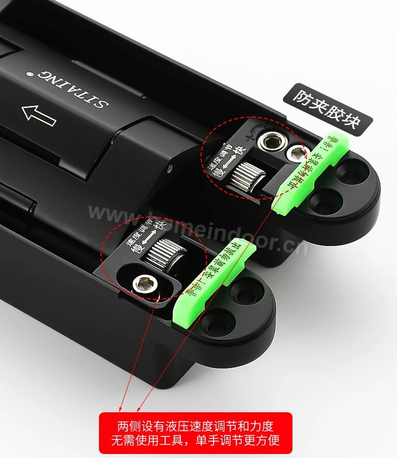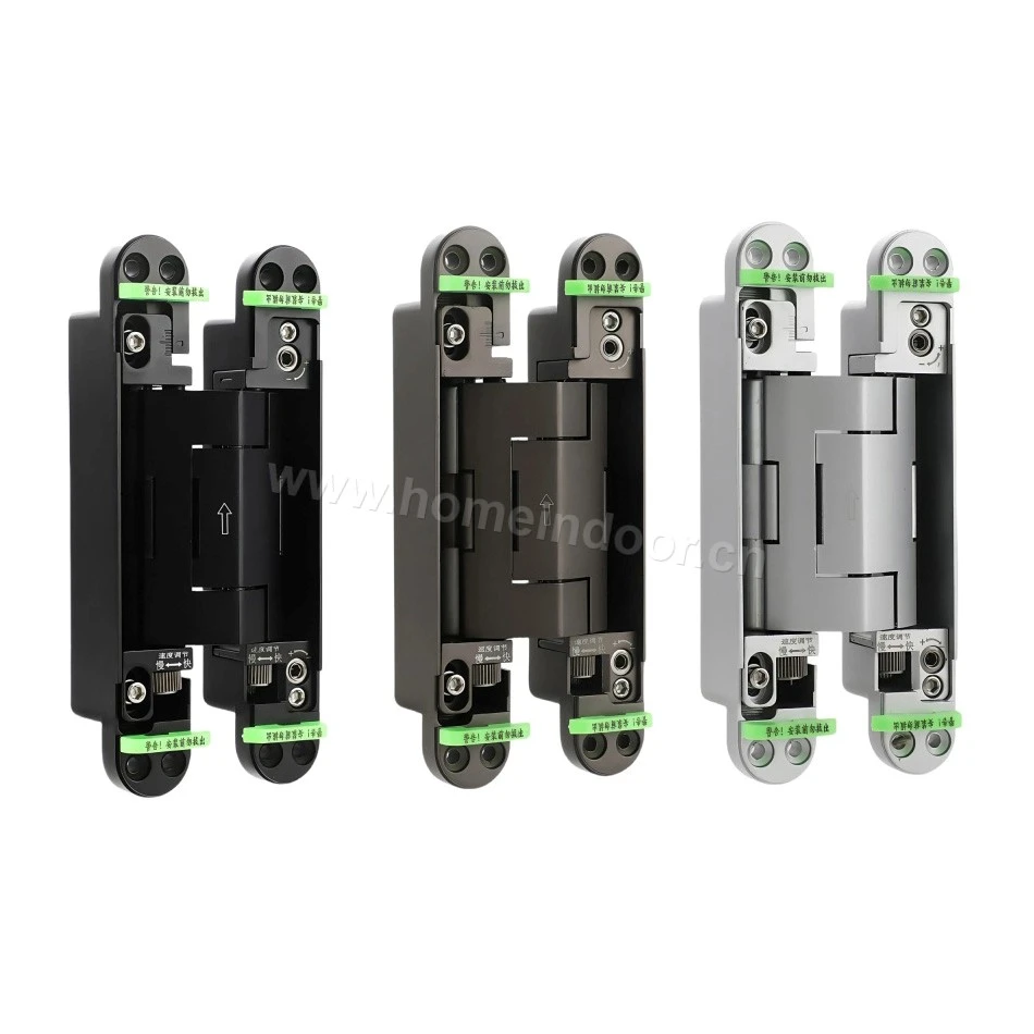 This heavy-duty concealed hinge is engineered for high-performance use on interior doors that require superior durability, smooth operation, and a sleek, hidden look. Constructed from robust aluminum alloy, it offers excellent strength while remaining lightweight and resistant to corrosion, making it ideal for long-term use in residential, commercial, or institutional interiors.