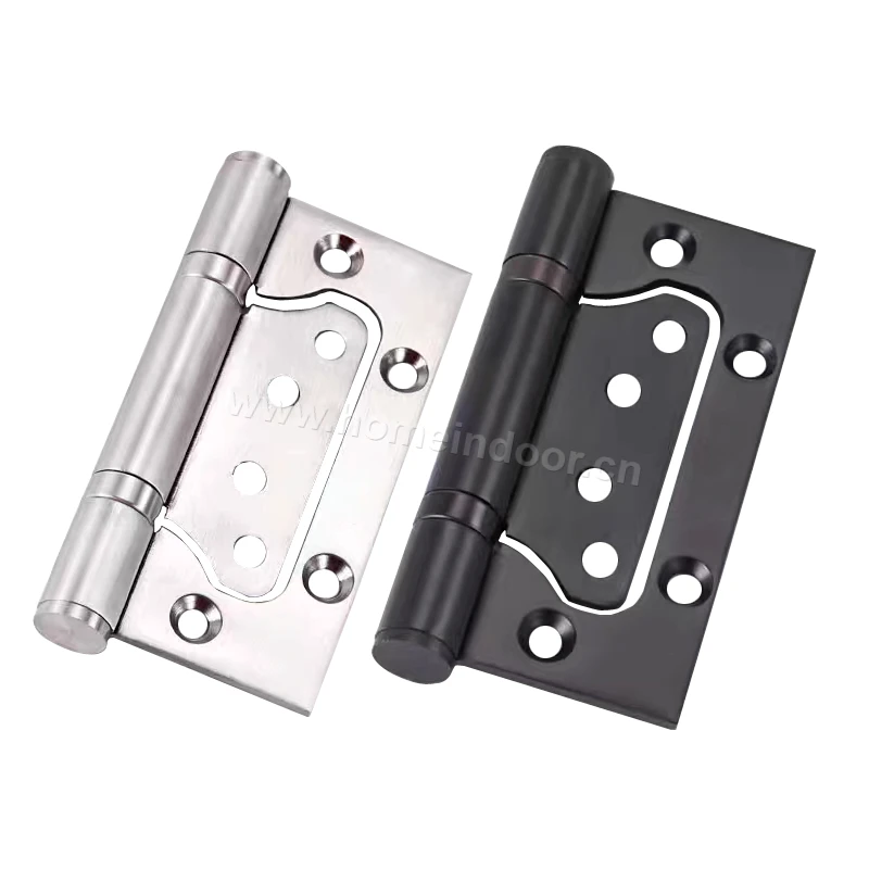 This hinge is available in 2.5mm or 3mm thickness, offering superior structural stability and load-bearing capacity for light to medium-weight wooden doors. It features a flush-mount design, allowing one leaf to nest into the other when closed. This eliminates the need for deep mortising, simplifying installation and creating a clean, professional finish on wood surfaces.