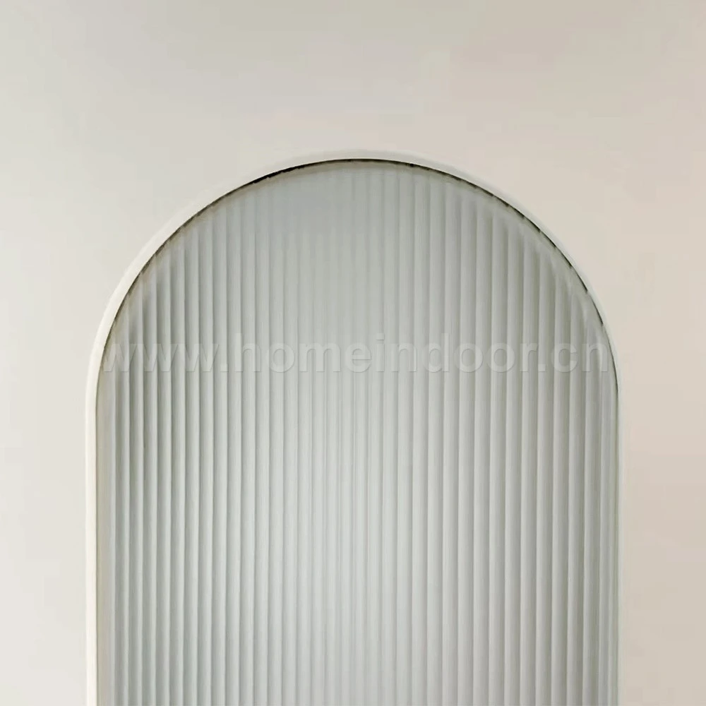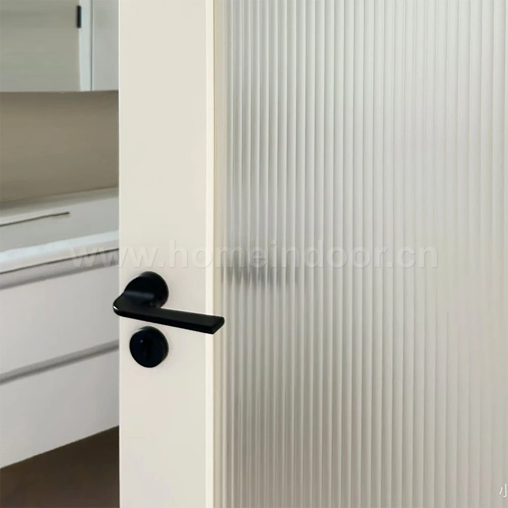 The fluted glass used in the door is another standout feature. Unlike regular frosted glass, fluted glass has a textured surface that creates vertical ridges, allowing light to filter through softly while maintaining privacy. The gentle ripple effect of the glass diffuses light more evenly across the room, providing a brighter and more ambient atmosphere. The aesthetic of fluted glass adds a subtle depth and interest, making it a more dynamic choice compared to the flat, opaque look of frosted glass.