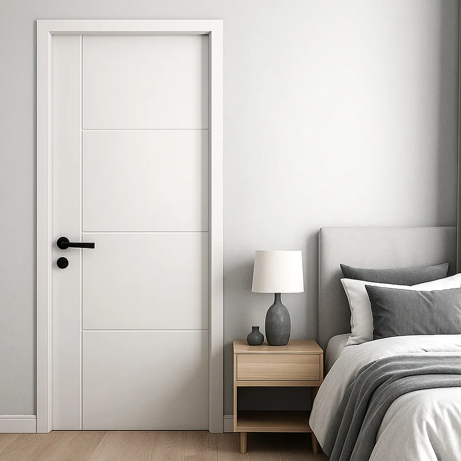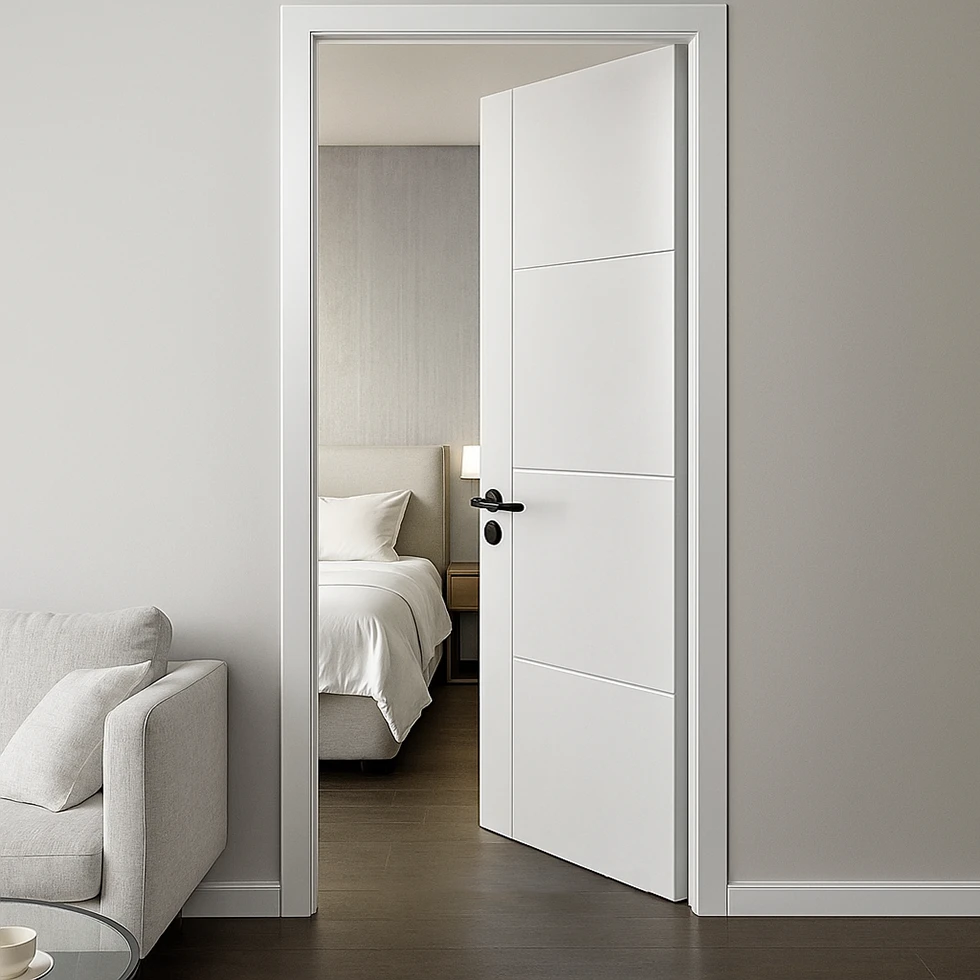 The soft white color of the door brings a timeless, versatile look that enhances any room. White is universally appealing, blending seamlessly with a variety of interior design styles, from modern and minimalist to more traditional or eclectic settings. One of the key advantages of white as a door color is its ability to reflect light, making spaces feel brighter, larger, and more open, particularly in smaller or dimly lit rooms like bedrooms. This effect contributes to an airy, serene atmosphere, ideal for restful areas.