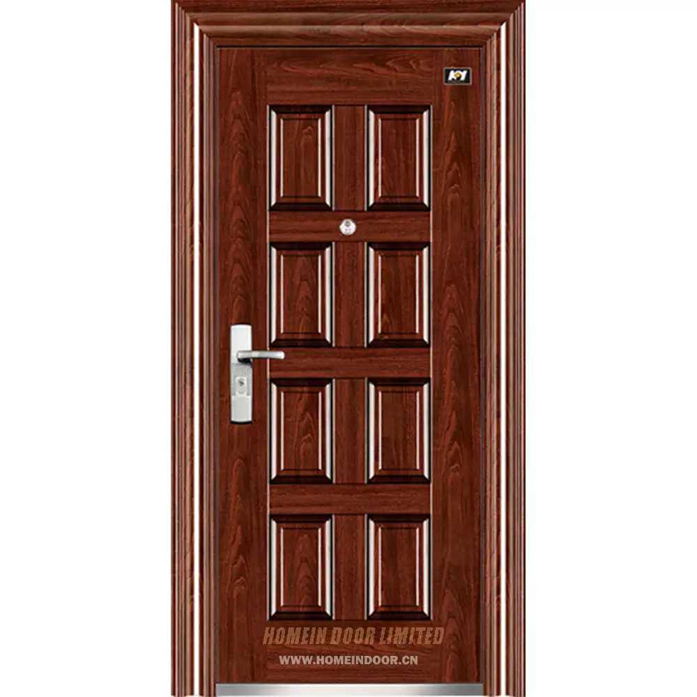 80 USDThis affordable steel security front door is designed to provide both durability and safety at a low cost. Made from high-quality cold-roll steel, the door features a thick 0.5–0.8mm door leaf and a 1.2–1.5mm door frame, offering strong resistance against forced entry. The honeycomb paper core inside enhances the door's structural integrity.