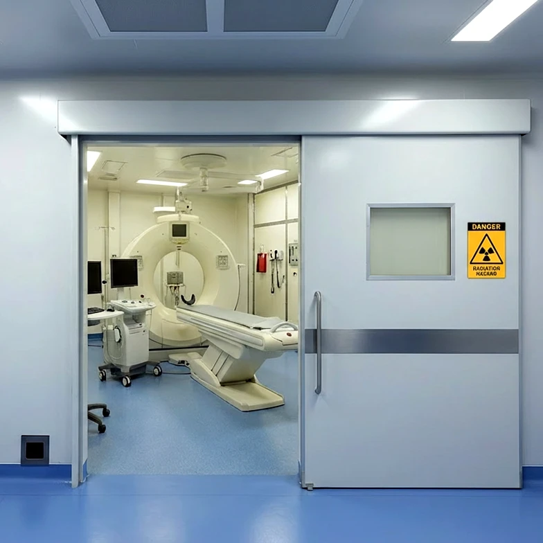 In summary, the radiation shielded door with glass combines the necessary radiation protection with enhanced functionality and safety features, ensuring a secure and efficient environment for both patients and healthcare staff in CT scan rooms. The door’s combination of lead lining, glass vision panel, automatic sliding system, and stainless steel finish makes it a crucial component in the hospital's radiation safety infrastructure.