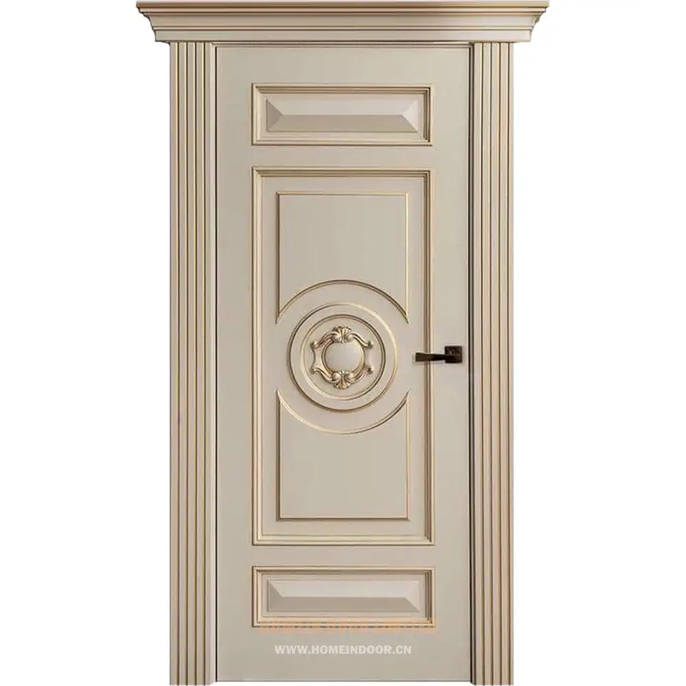 Pre:Interior luxury white 3 panel solid wood door with crown moulding
