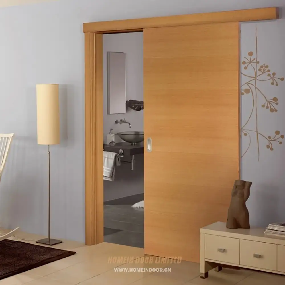 Pre:Interior modern brown painted flush wood surface mounted sliding door with cover