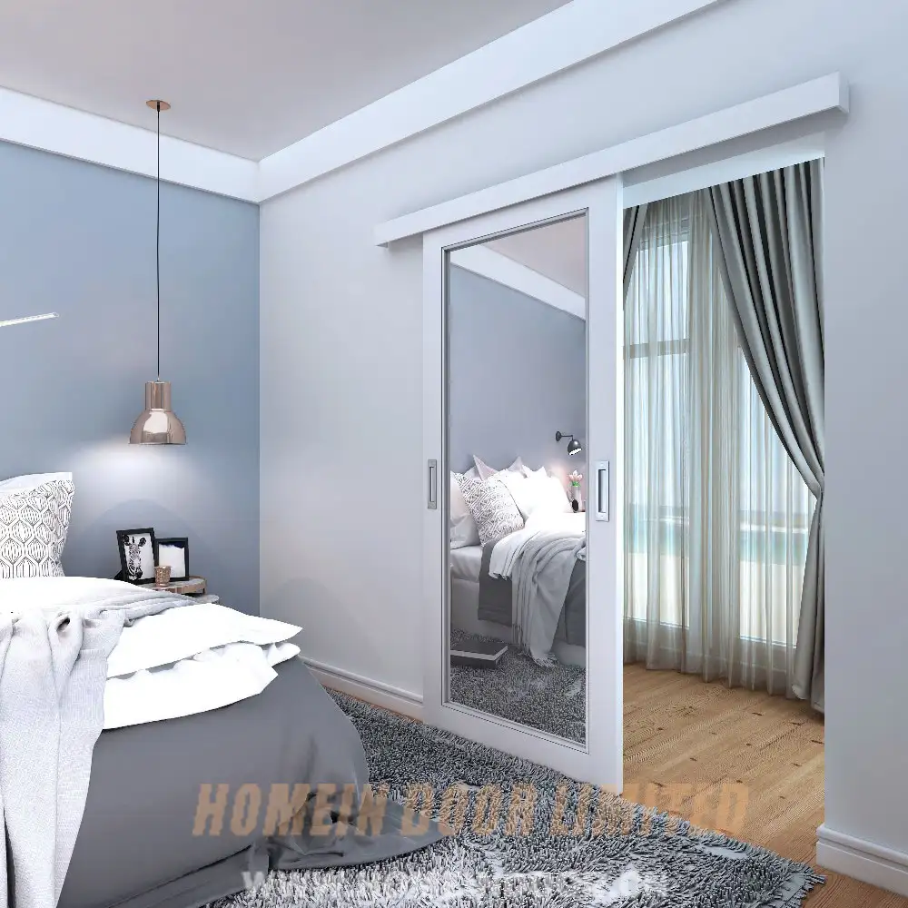 Pre:Residential internal Bedroom contemporary mirrored wood surface mounted sliding door