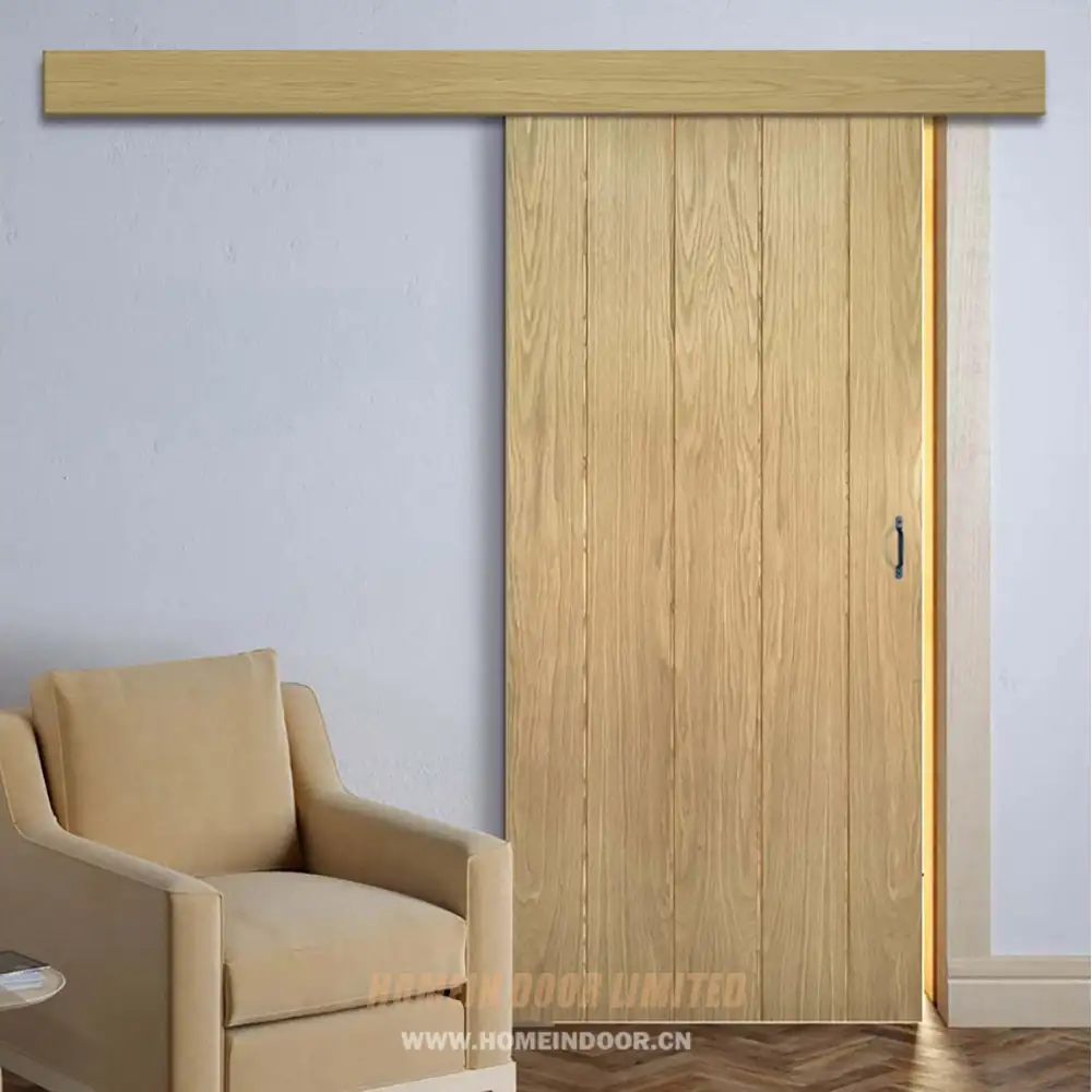 Pre:Interior Bedroom modern brown flush wood surface mounted sliding door with rail covering