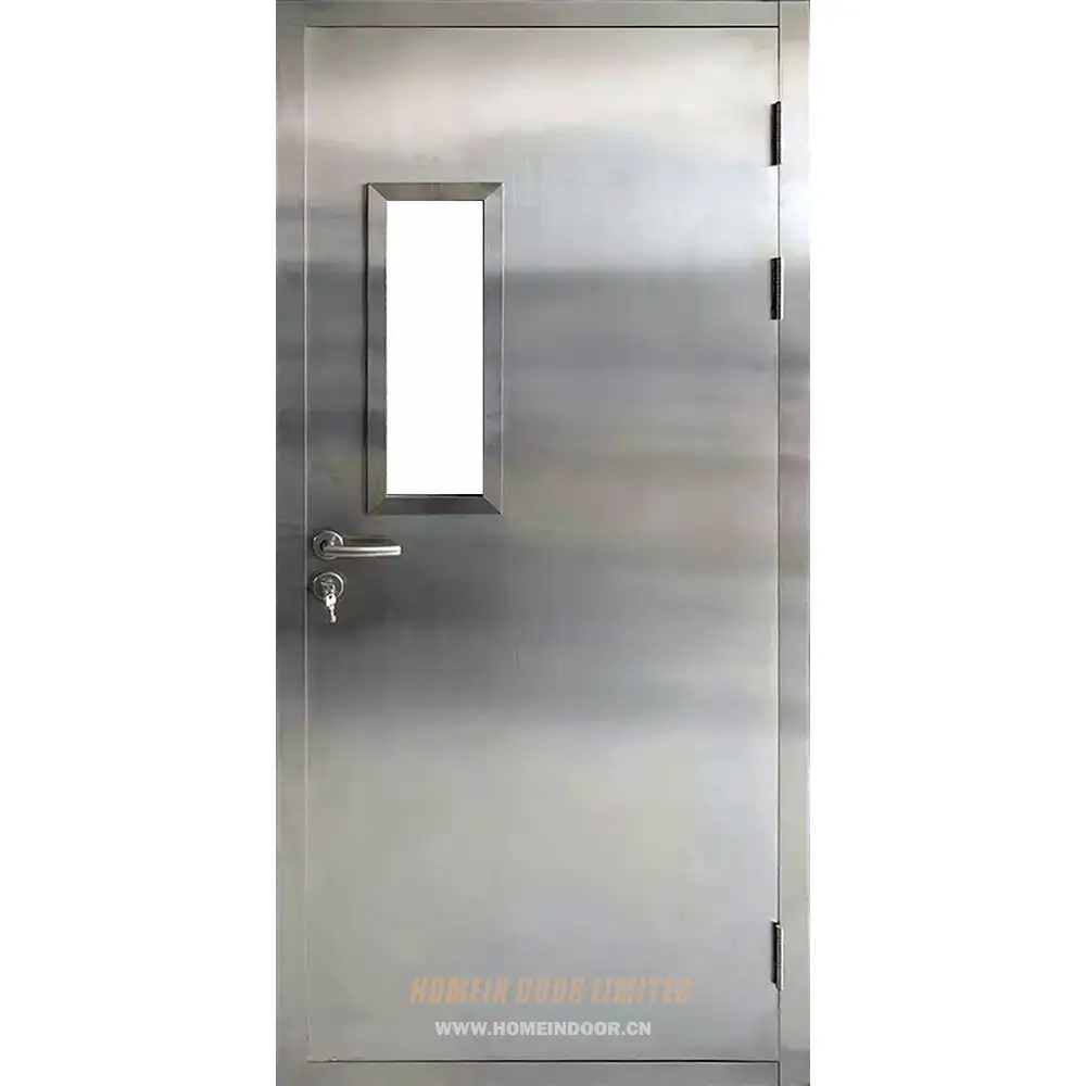 Pre:Comercial 90 minutes fire proof 304 stainless steel door with glass insert
