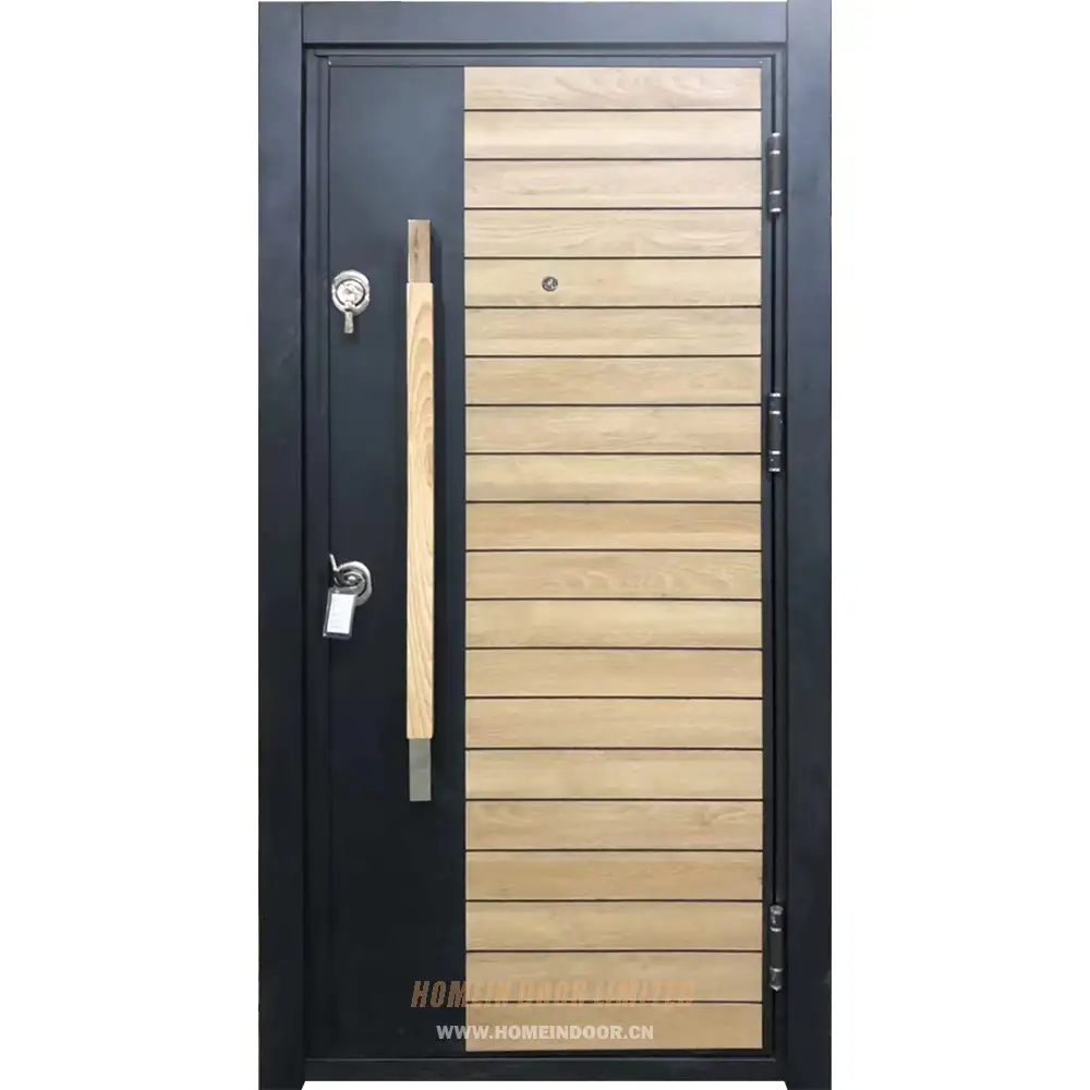 Next:Home external entrance flush steel-wood armored door with metal inlay