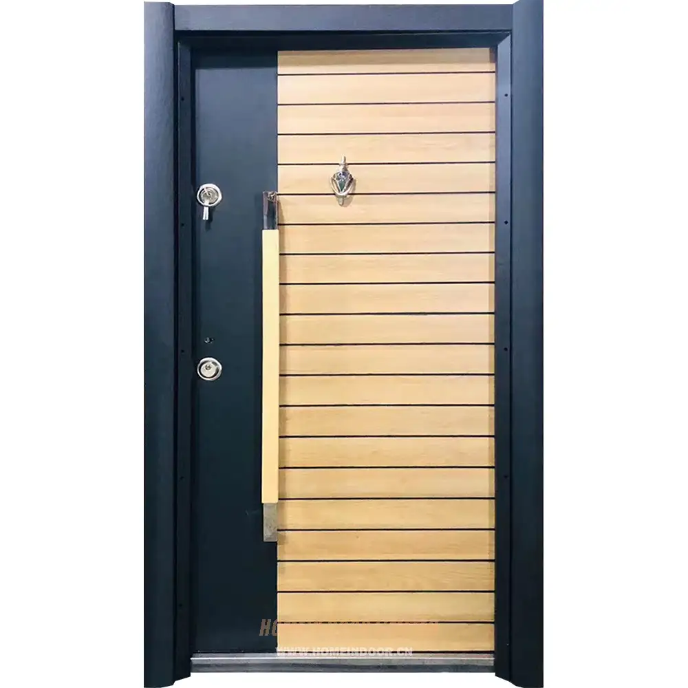 Pre:Home external entrance flush steel-wood armored door with metal inlay