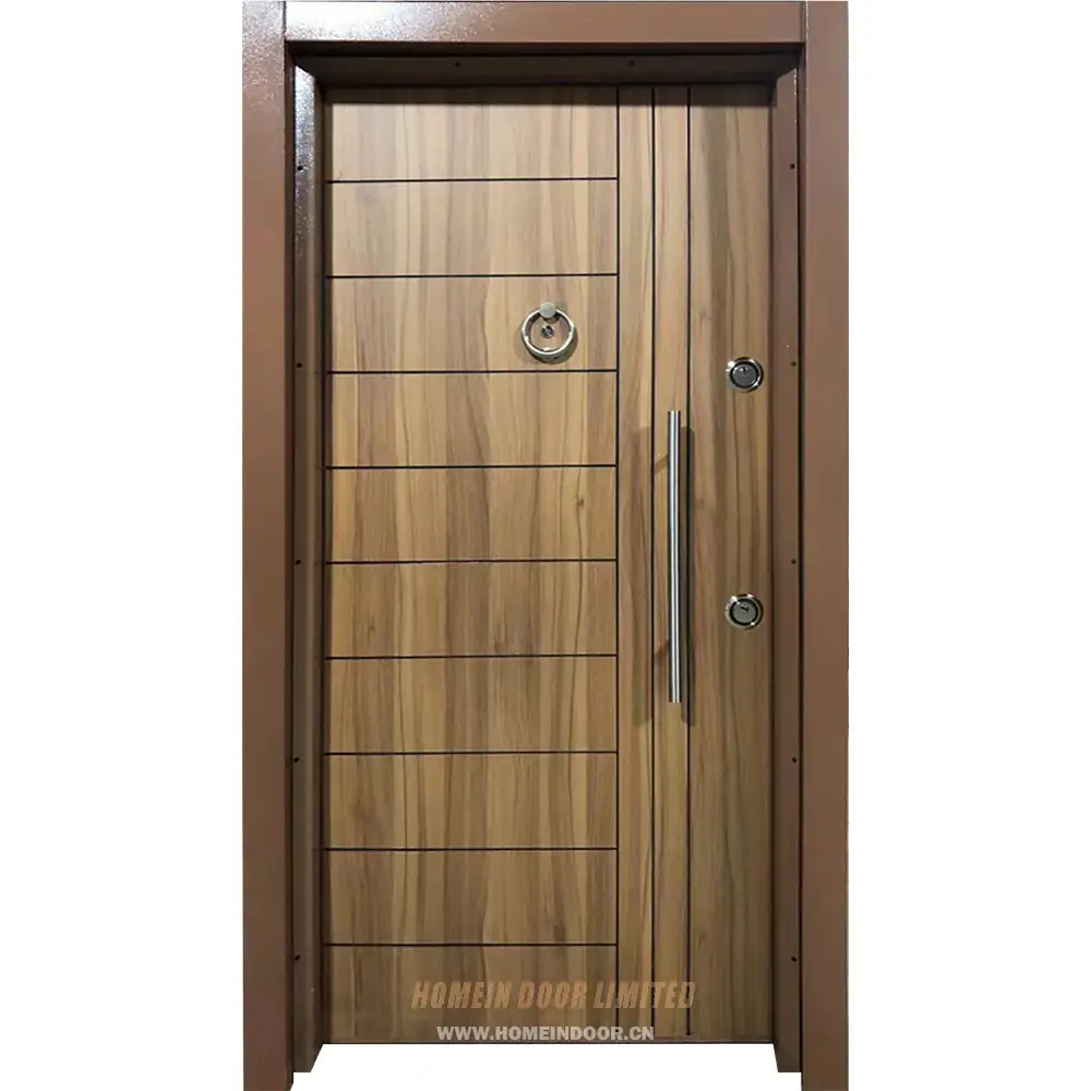 Next:Residential external entry brown rosewood veneer paint metal inlay steel-wood armour door