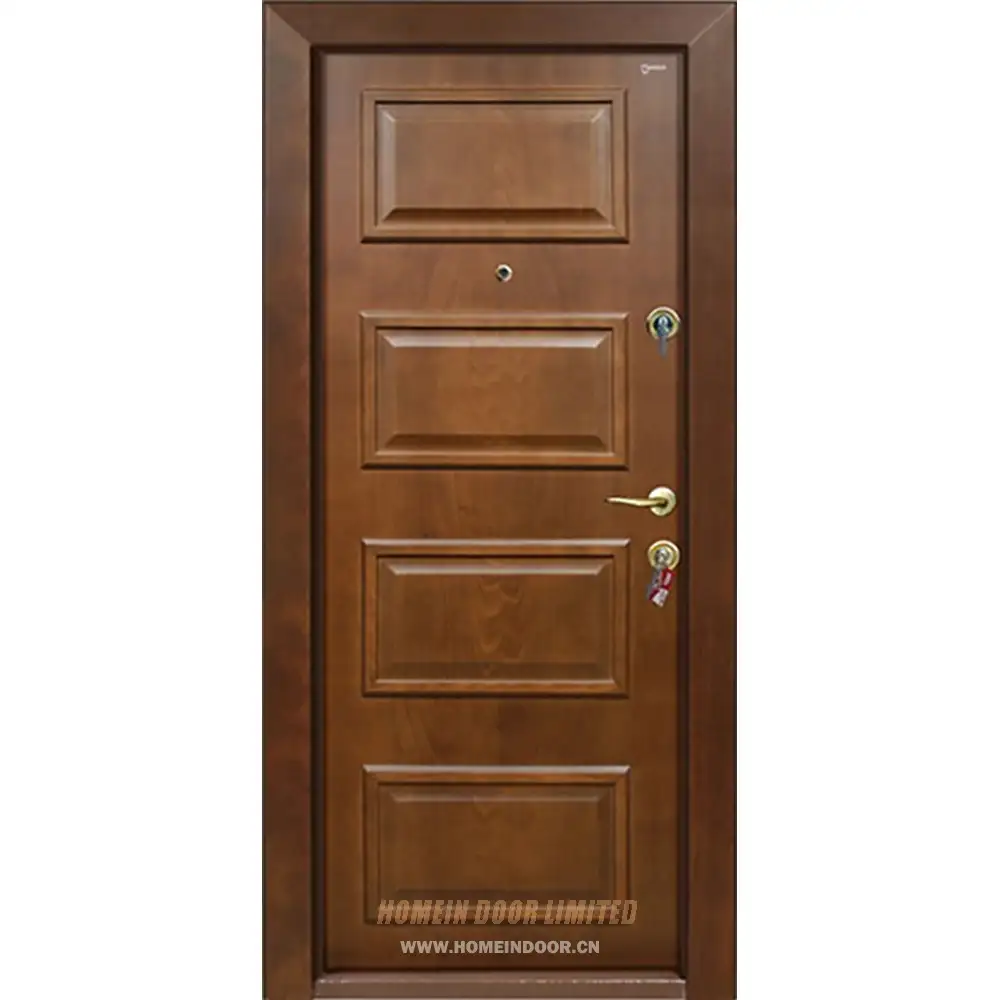 Pre:Residential external entry brown cherry wood painted grooved steel-wood armoured door