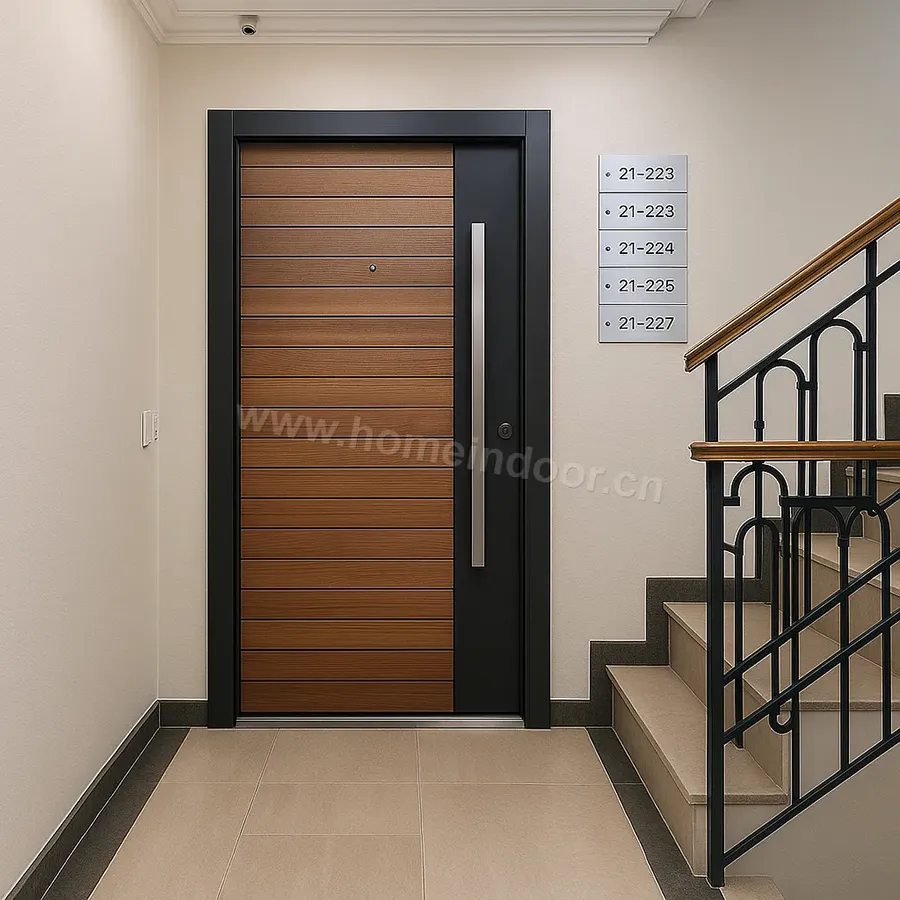 Ideal for upscale residential settings, this door integrates contemporary design with military-grade strength, offering peace of mind without sacrificing curb appeal.