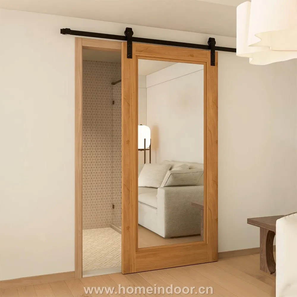 Pre:Black wood bathroom barn sliding door with full length mirror
