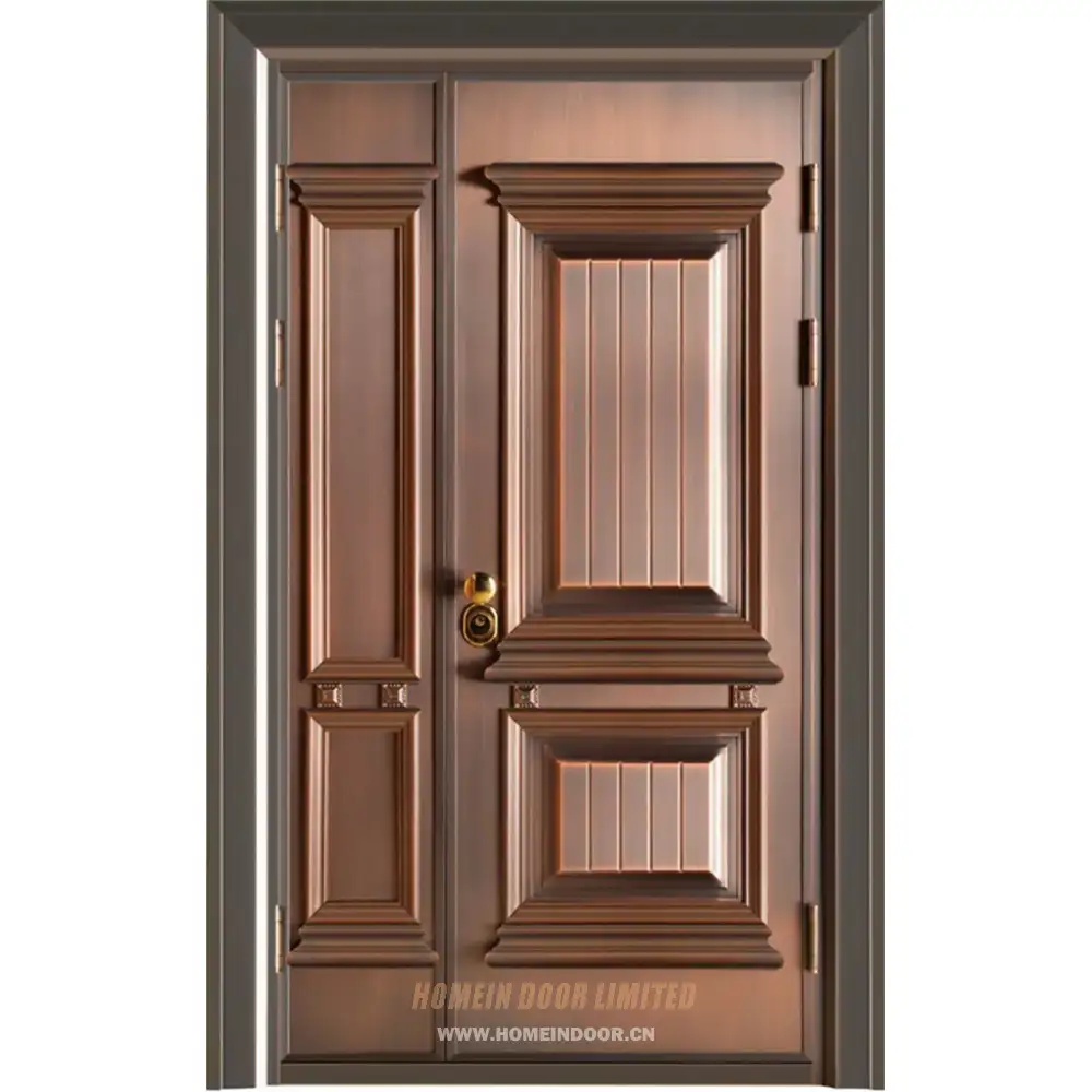 Pre:CPD05 villas exterior front entrance classic 2 panel armored security brass door