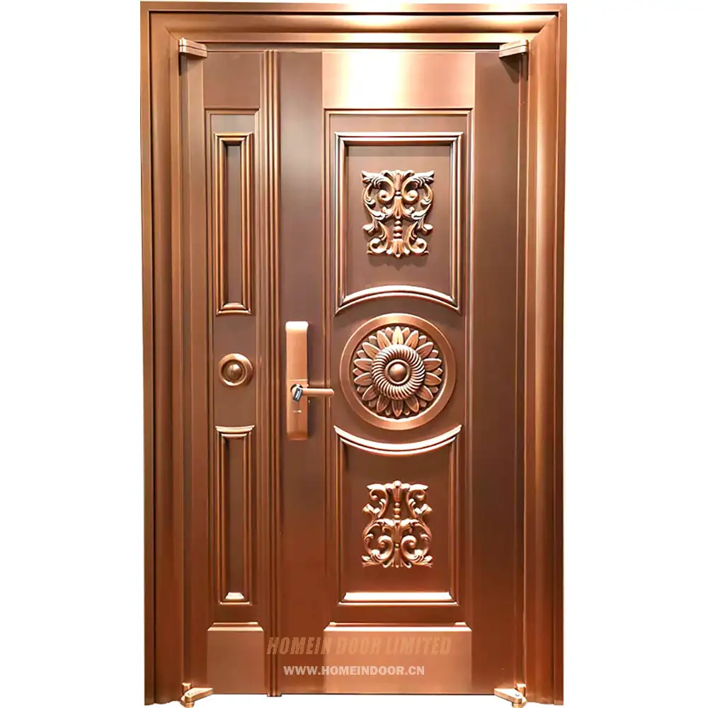 Pre:CPD06 villas exterior main entrance classic 2 panel armored security brass door