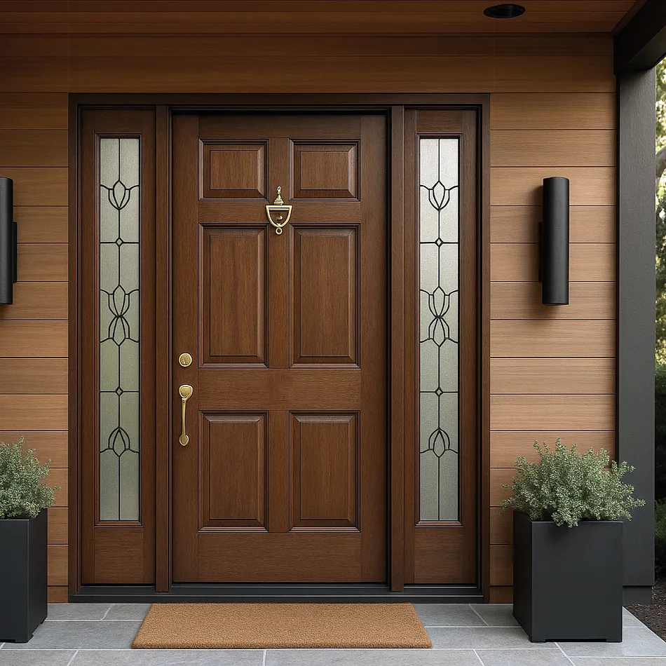 Perfect for traditional or contemporary homes, this mahogany front door with a sidelite combines durability, elegance, and functionality, making it an excellent investment for enhancing curb appeal and home value.