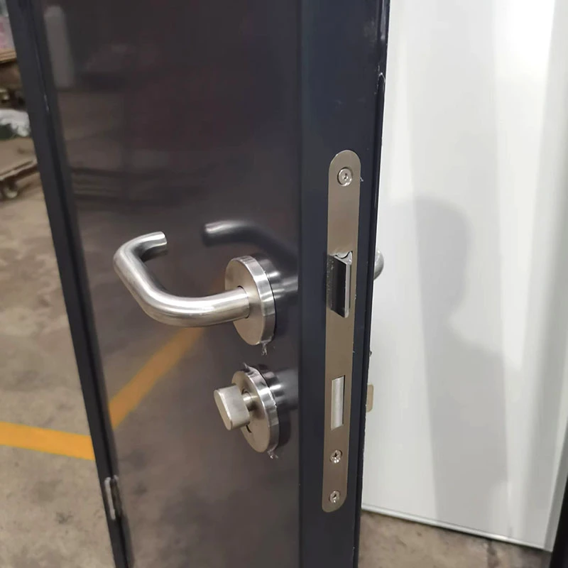The door leaf is constructed from 1.0mm galvanized steel, paired with a lightweight porous mineral core that provides exceptional thermal insulation and fire resistance. Its interlocking seam design enhances structural stability and minimizes heat transfer. The door frame is made of 1.5mm galvanized steel and is available in two configurations: a fully welded frame for permanent installations or a knock-down frame for flexible, on-site assembly.