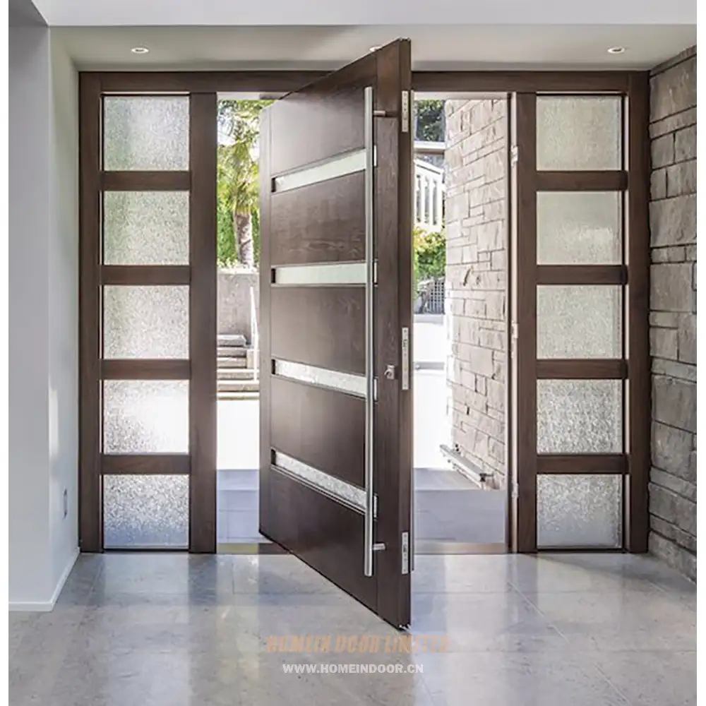 Pre:House entry solid mahogany pivot exterior door with fixed sidelite