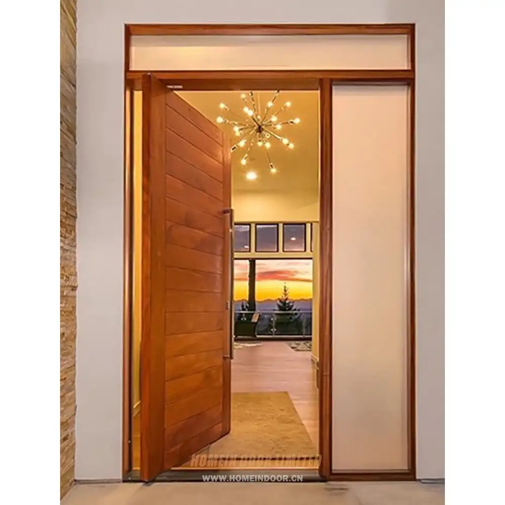 Pre:Residential solid wood flush pivot main door with one sidelites