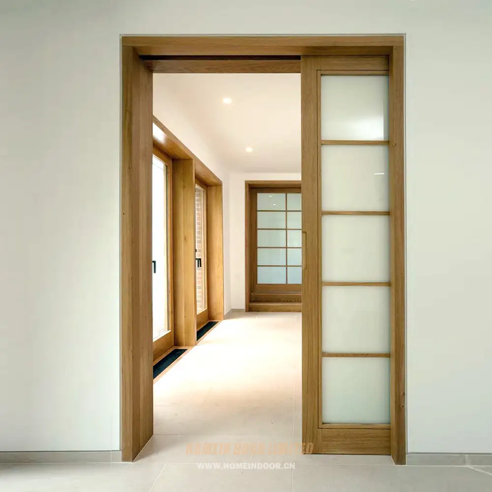 Pre:Internal floor to ceiling wood double sliding pocket door with glass