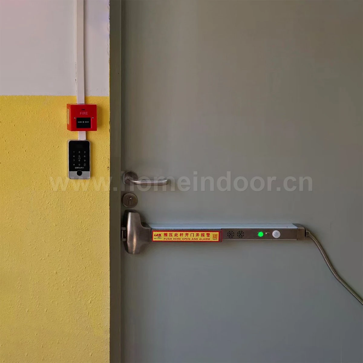 Components: Electric Locking alarm push bar,Access Control Reader,Push-to-Exit Button etc.