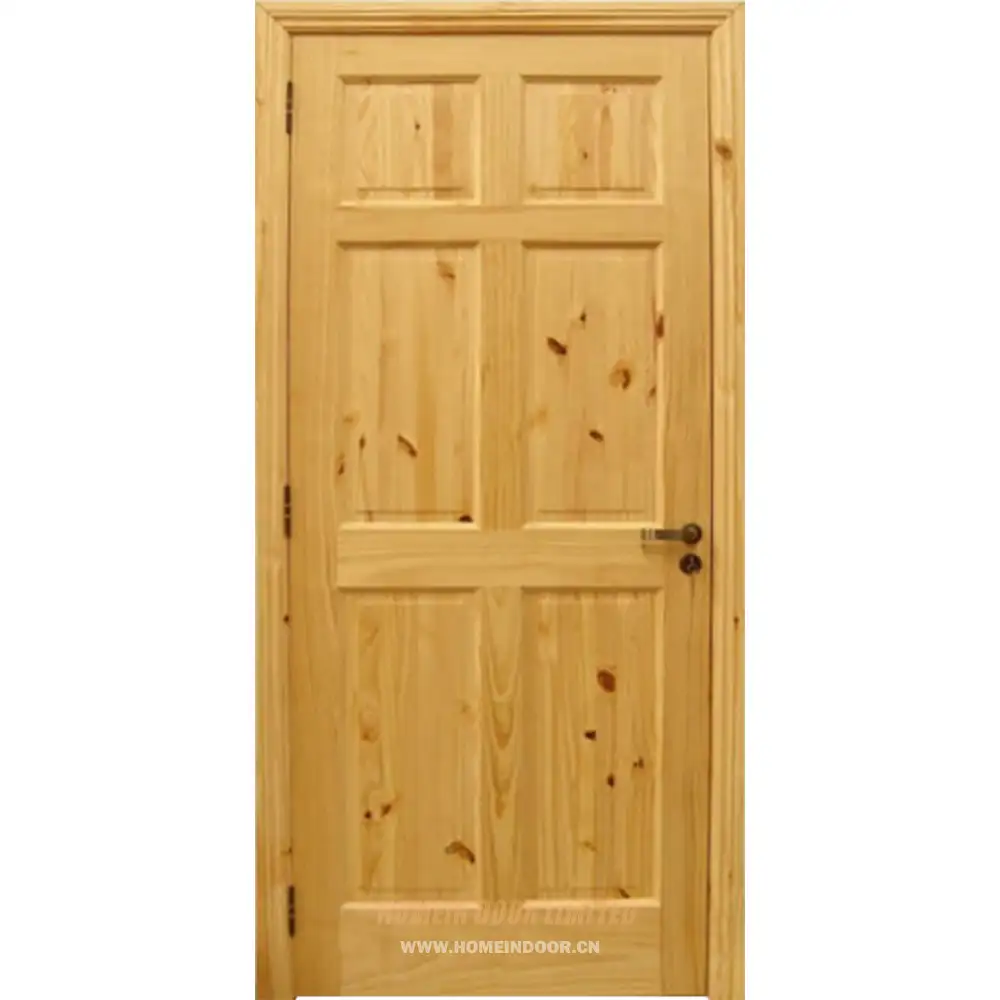 The Classic 6-Panel Knotty Pine Solid Wood Interior Door blends timeless craftsmanship with rustic charm, offering both aesthetic appeal and functional durability. Designed with a traditional 6-panel configuration, this door is crafted from high-quality knotty pine wood that highlights its natural grain and unique texture. The door features a stile and rail construction, ensuring stability and strength, while the smooth finish is achieved using water-based paint, which provides a clean, eco-friendly coating. This door is an excellent choice for adding warmth and character to interior spaces such as bedrooms, where it enhances both style and privacy.