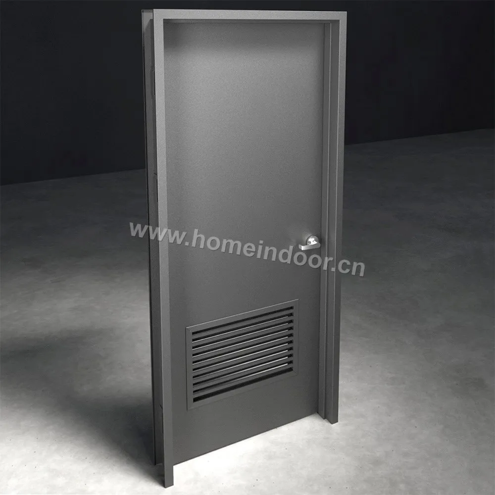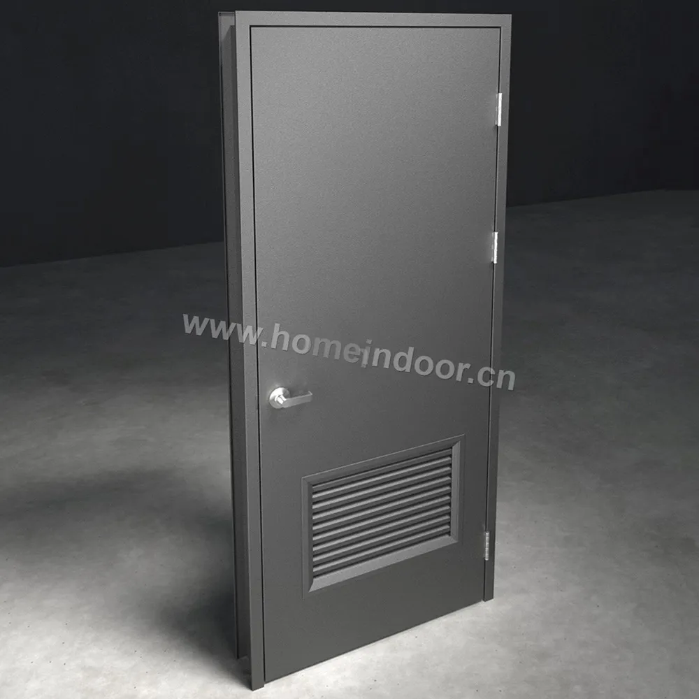 This door comes with five optional door core types to suit specific needs, allowing for customization based on insulation, soundproofing, or fire-resistance requirements. One of the key features is the small air vent or louver located at the bottom of the door, which promotes effective airflow and ventilation. This bottom vent ensures proper circulation, helping to reduce moisture buildup, control temperature, and maintain air quality inside enclosed spaces without sacrificing security or durability.