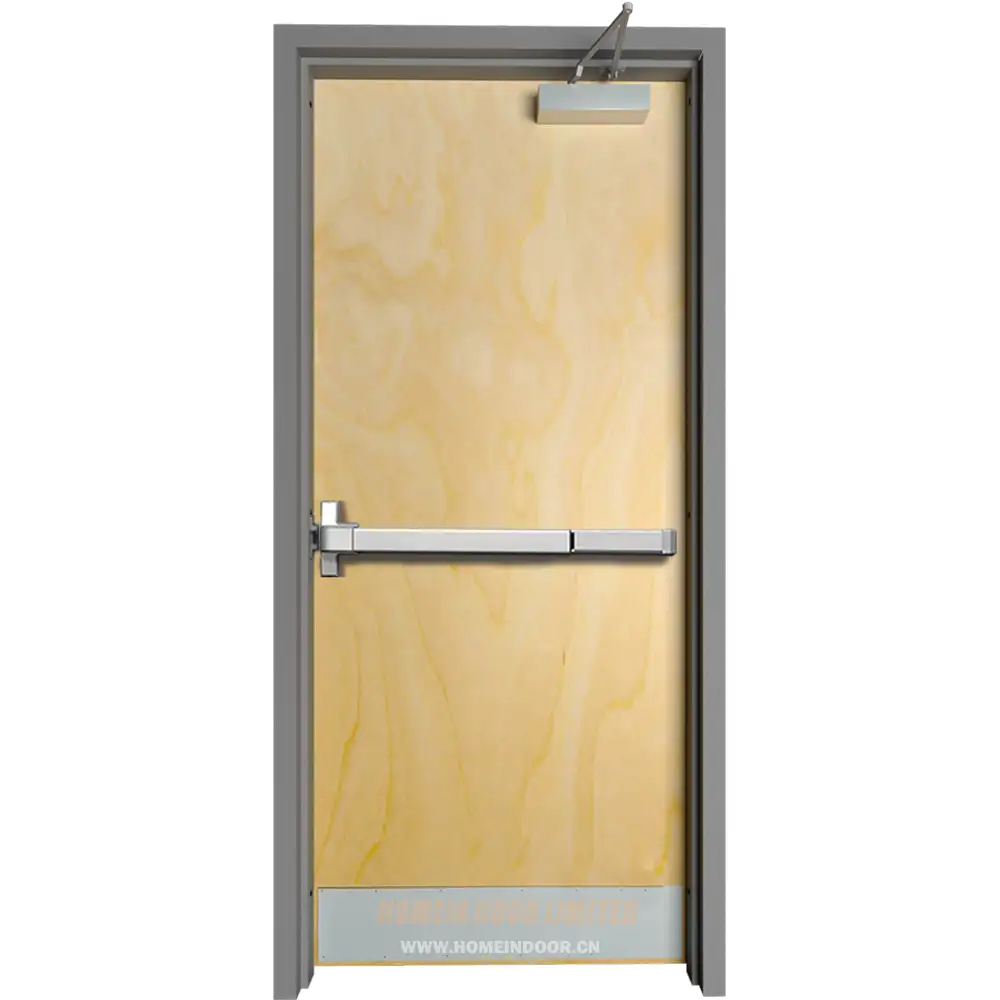 Pre:UL listed metal frame commercial wood exit door with push bar