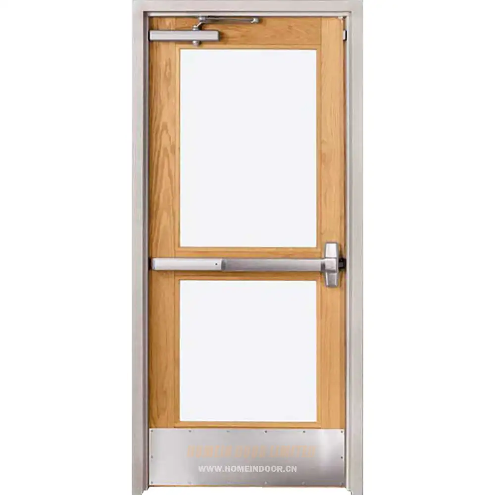 Pre:UL glazed flush solid core wood door with hollow metal frame
